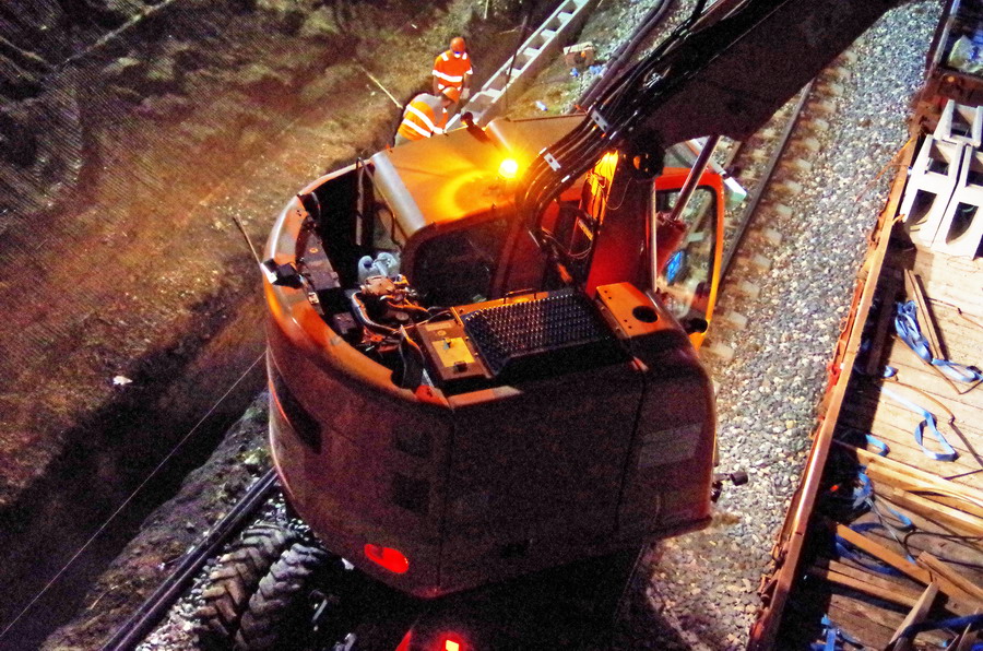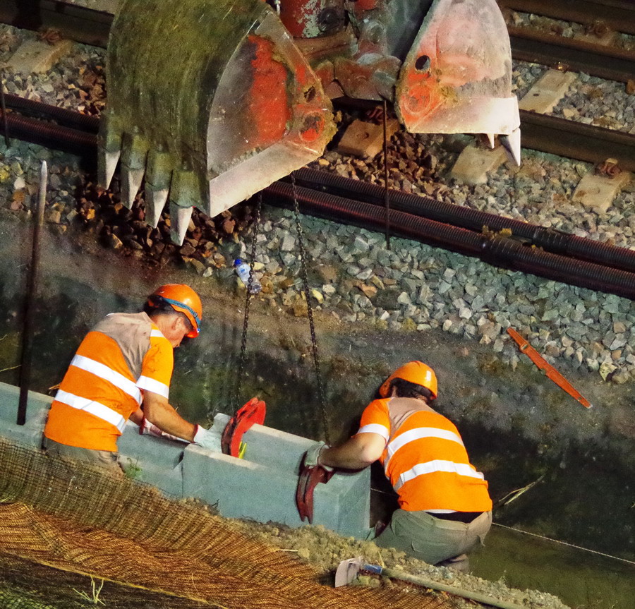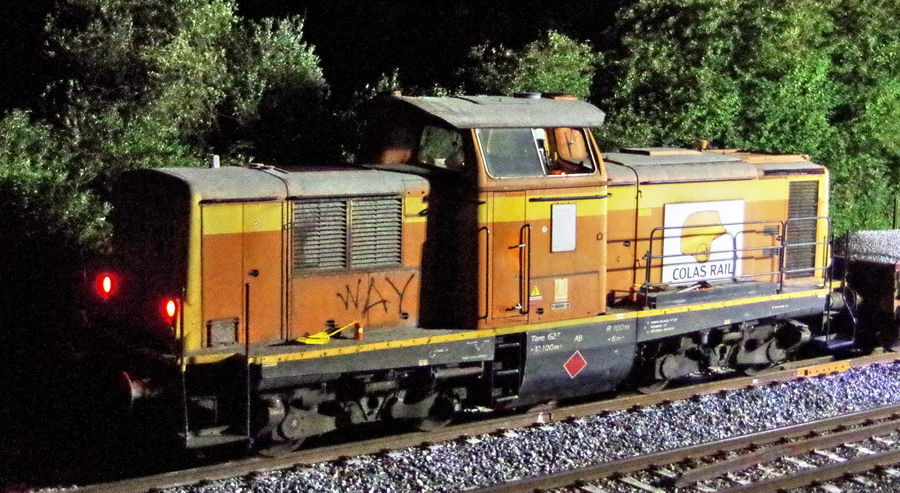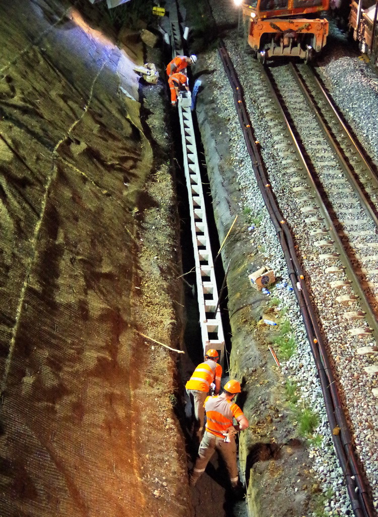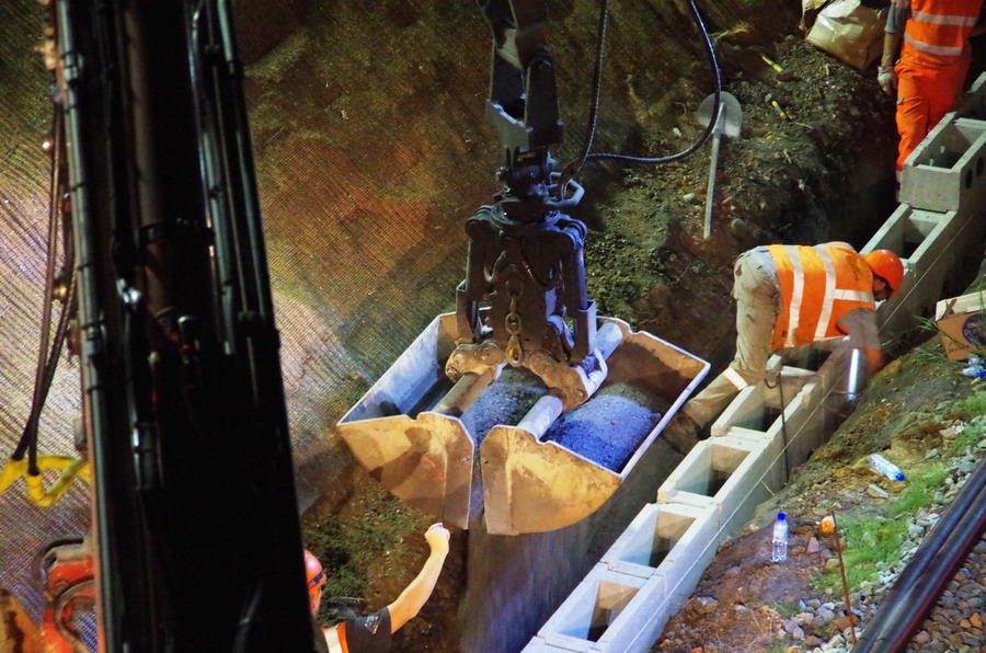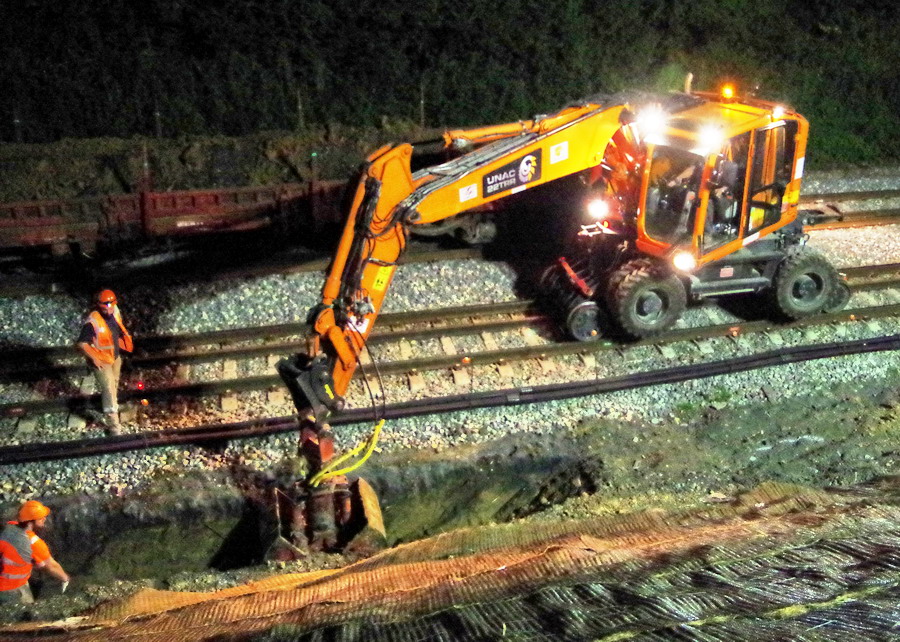 nuit du 26 au 27 juillet 2018 avec le travail pour l'installation des caniveaux par Colas Rail au niveau des ponts de Bray à la bifurcation de Jussy