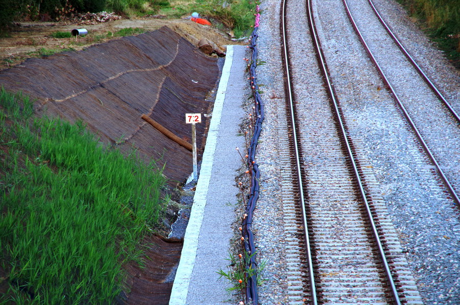 pour voir l'ensemble des travaux fait la nuit passée avec l'installation des caniveaux entre la voie 2 et le talus