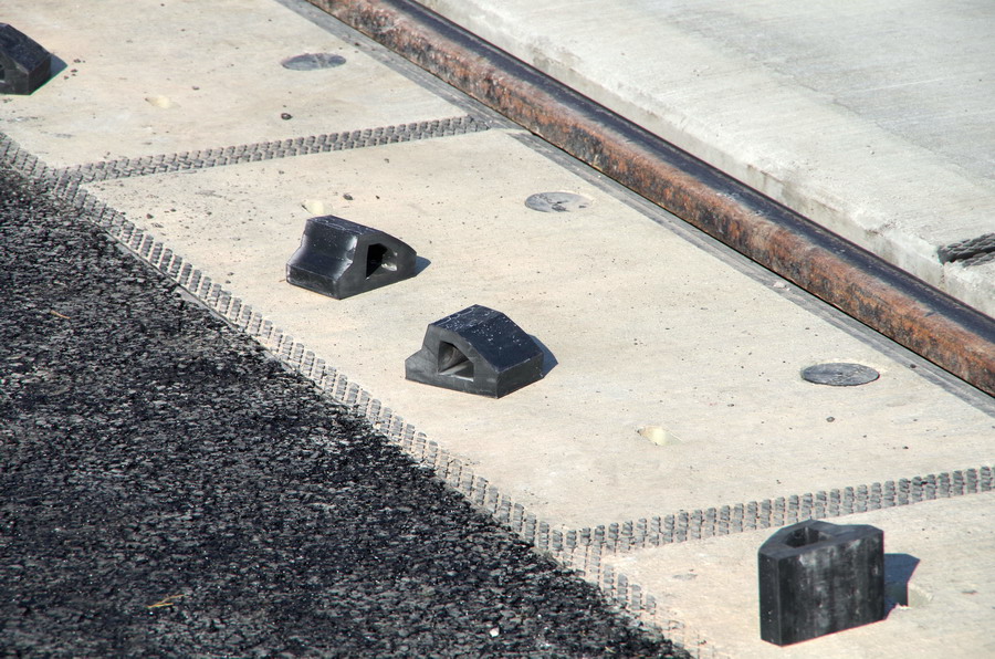 Cette solution a été retenue par la SNCF pour plusieurs réalisations sur le réseau ferré. Les raisons de ce choix ont reposé sur la rapidité de pose des dalles préfabriquées en béton afin de pénaliser le moins possible la circulation routière. La solution à attaches classiques permet de faciliter les interventions de dépannage et d'entretien par rapport à d'autres systèmes de maintien du rail.