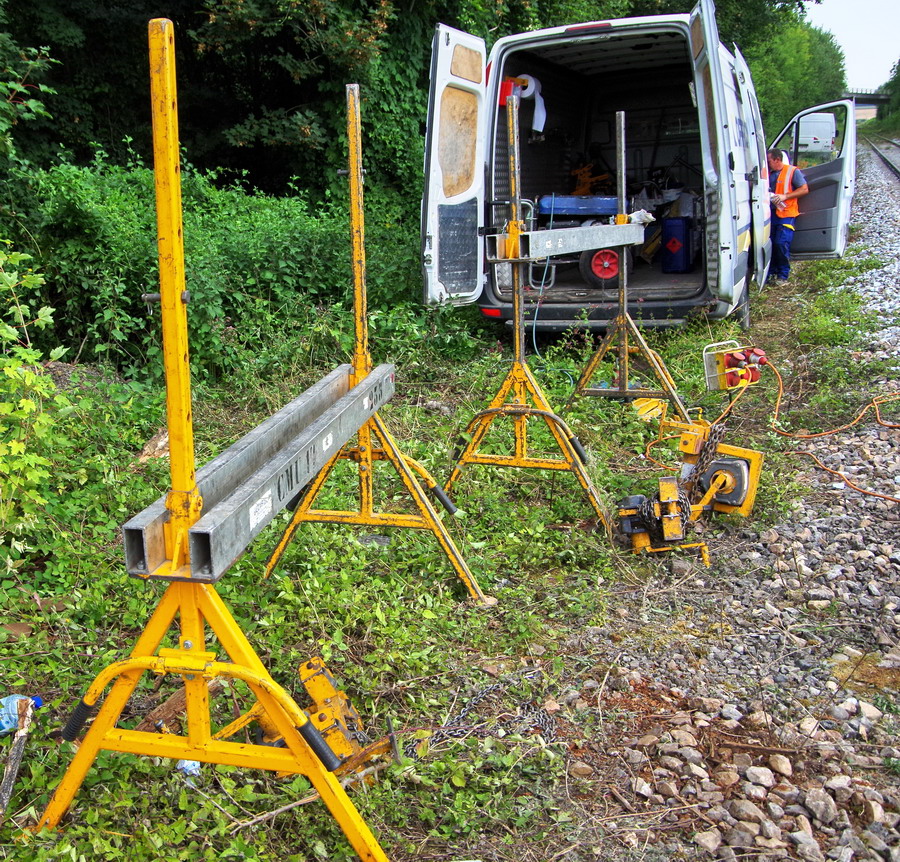 mise en place du Portique de substitution de rails pour le recalage de la VU à Rogny (02) le 27-07-2018
