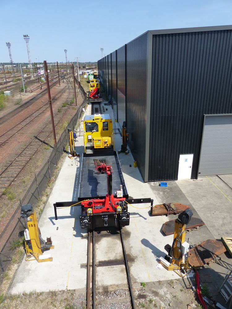 et la voila le 15 août 2018 et on voit bien les bogies porteurs pour le transfert dans l'atelier de la Socofer