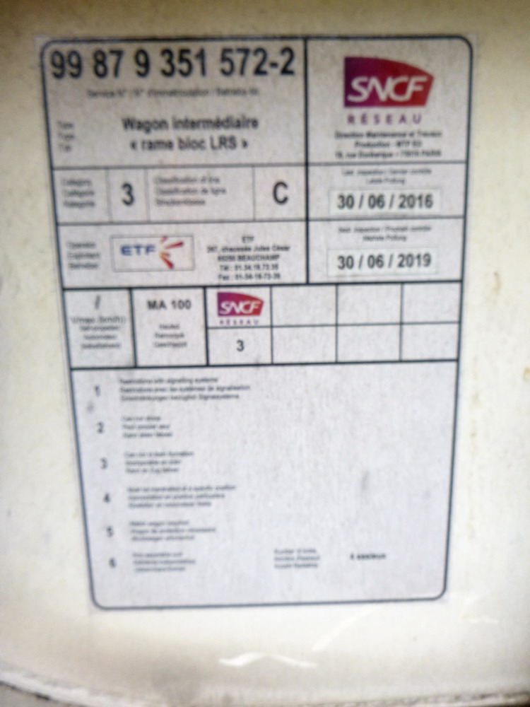 Wagon intermédiaire de la "Rame bloc LRS ZD" ex 33 88 4 594 185-7 (B) date Agrément d'ETF 30-06-2016