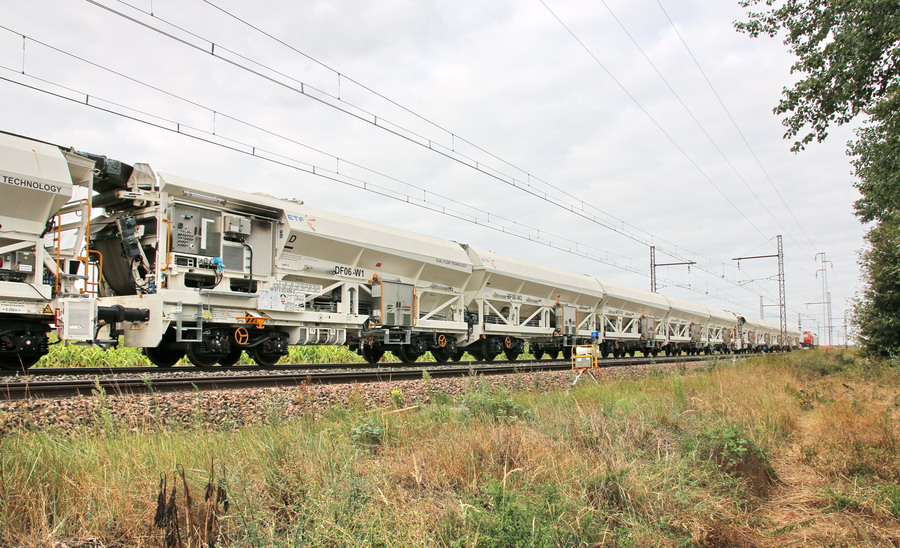 et voilà la bête la Dégarnisseuse RM 95-800 n°4938 - 99 87 9 314 506-6 Meccoli entre le wagon transfert SDM 800 n°342 - 99 87 9 352 570-5 Meccoli