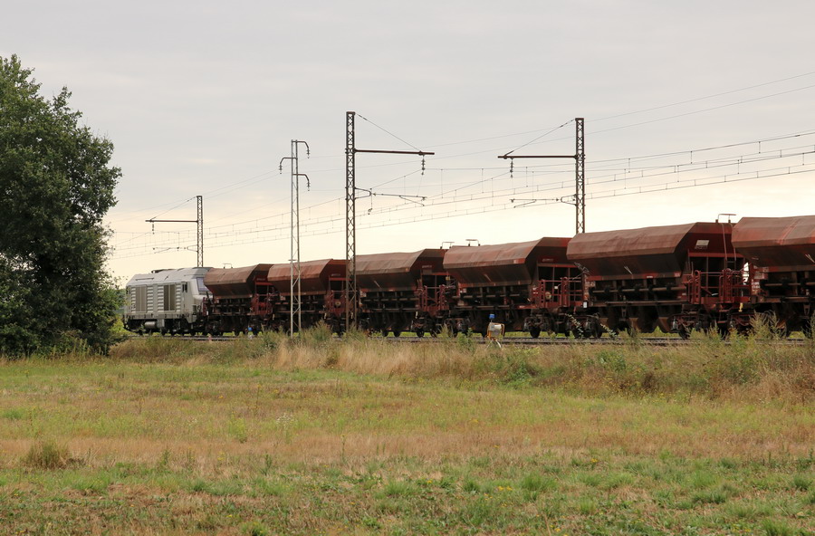 avec la présence d'une rame de wagons Trémies D12 avec la E4029 - 92 87 0004 029-0 F-ETF en tête