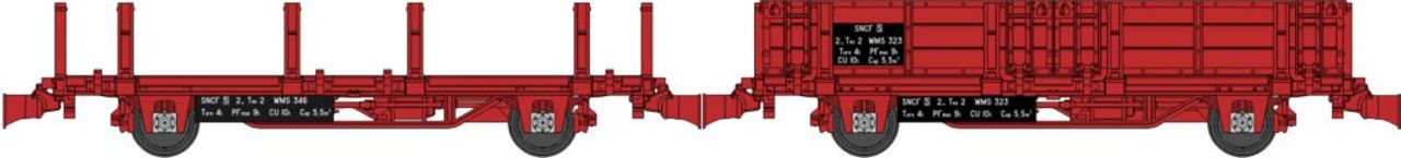 SET DE 2 WAGONNETS DE DRAISINE (PLAT & PLAT A RANCHERS) SNCF
