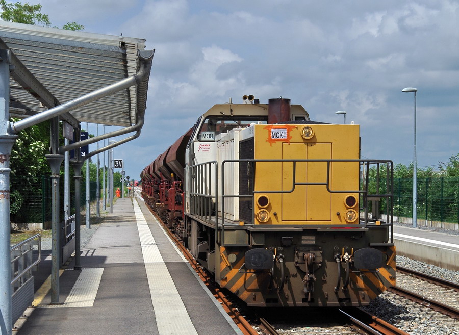 La voici sur le train n°MCK1 avec une rame de Trémies D12 en gare de Rosières-en-Santerre PK 31 entre Chaulnes et Longueau