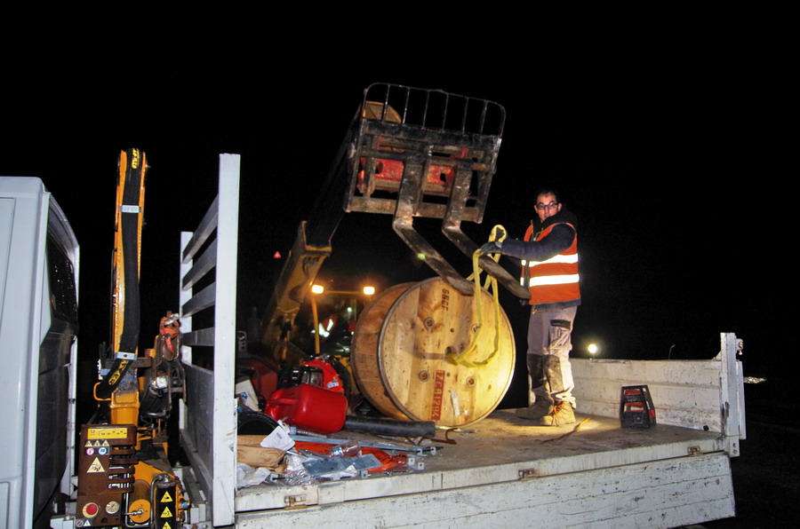 vers un bassin de décantation, le lieu est une zone boueuse et mise en place de câbles de mise à la terre avec enfouissement par