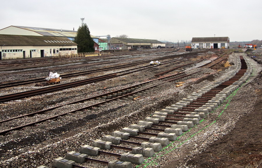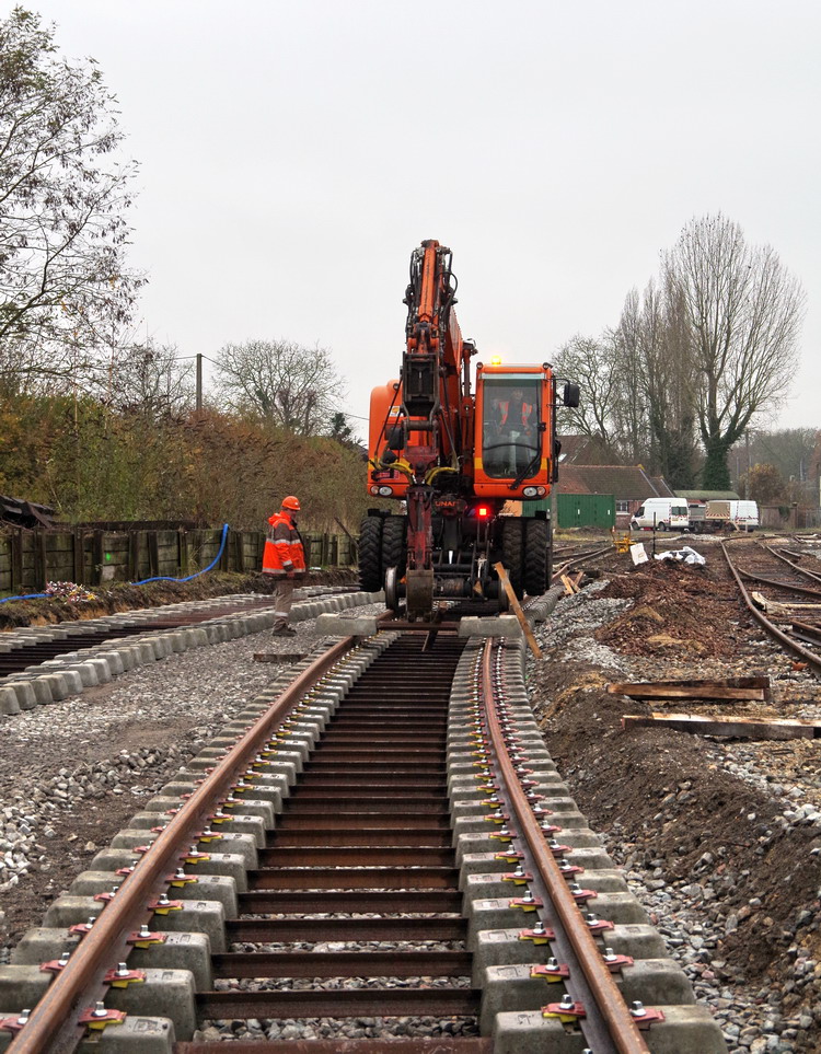 mise en place des nouvelles traverses bibloc neuves sur le site en travaux de Longueau le 26-11-2018