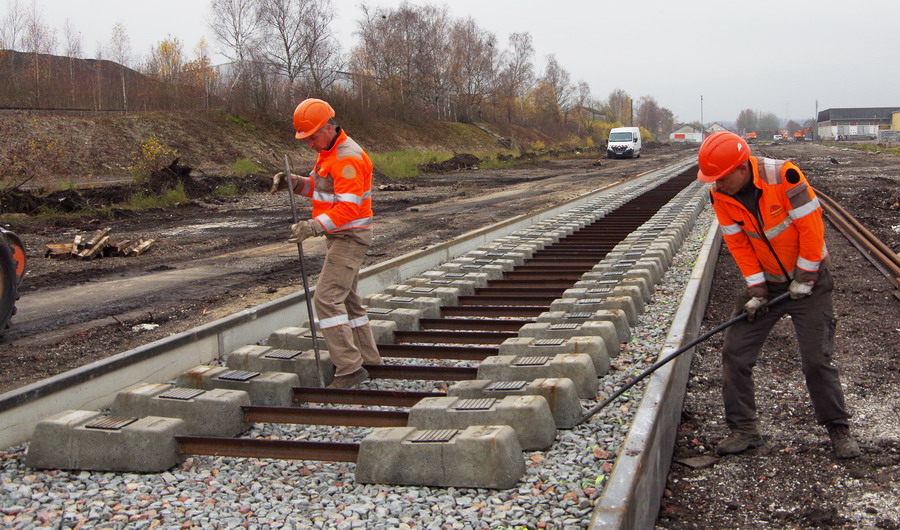 mise en place des traverses bibloc neuves sur le site de travaux de Longueau le 26-11-2018