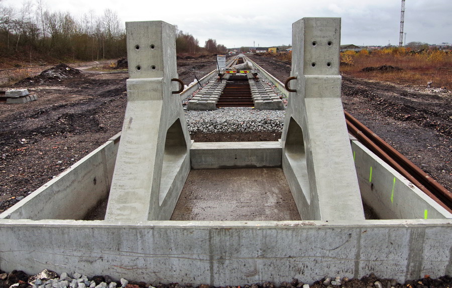 Traverses bi-blocs en béton armé sur la base de travaux arrière à Longueau le 07-12-2018