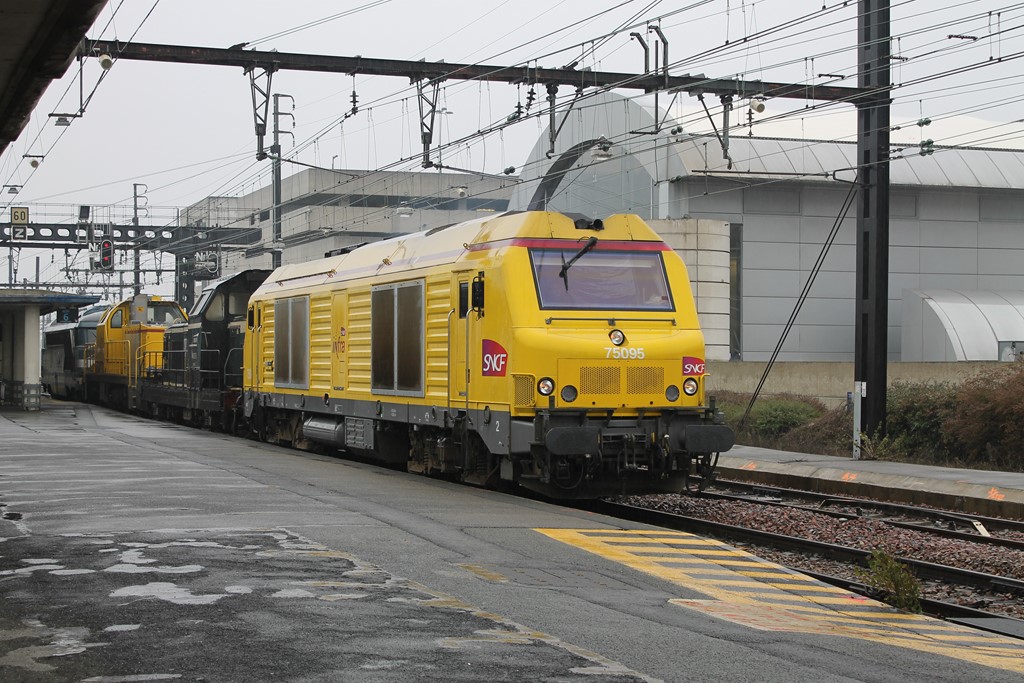 UM 75095 75084 + un 75000 en véhicule avec un train Infra Chalindrey Creil à Chatenay-Mâcheron (ligne 4)...