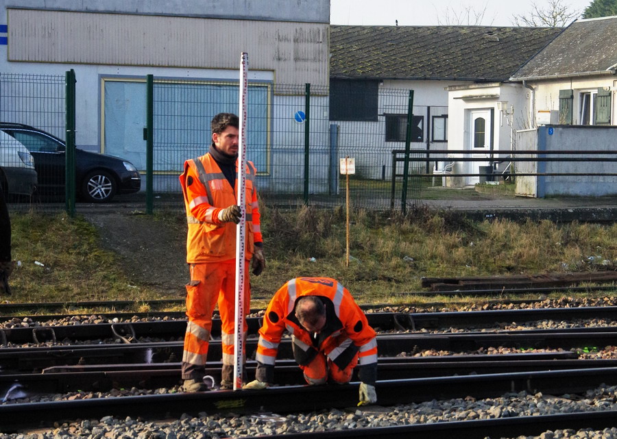 prise de mesure avec une règle Geismar RCA 1435 au niveau du PN de la gare Ham et d'Eppeville le 20 février 2019