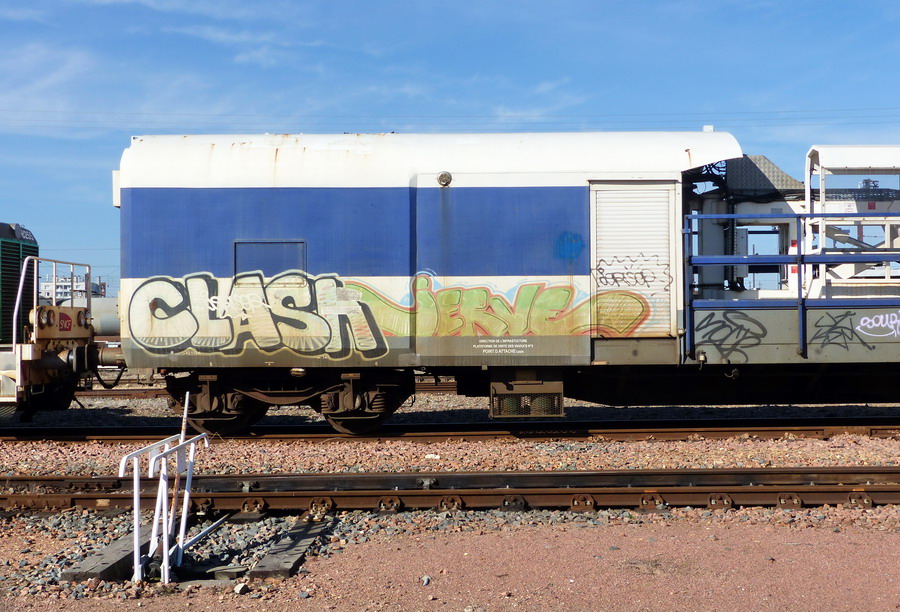 Le voici sur une rame Infra sur la zone de garage des rames SNCF Réseau à Saint Pierre des Corps le 01 janvier 2019