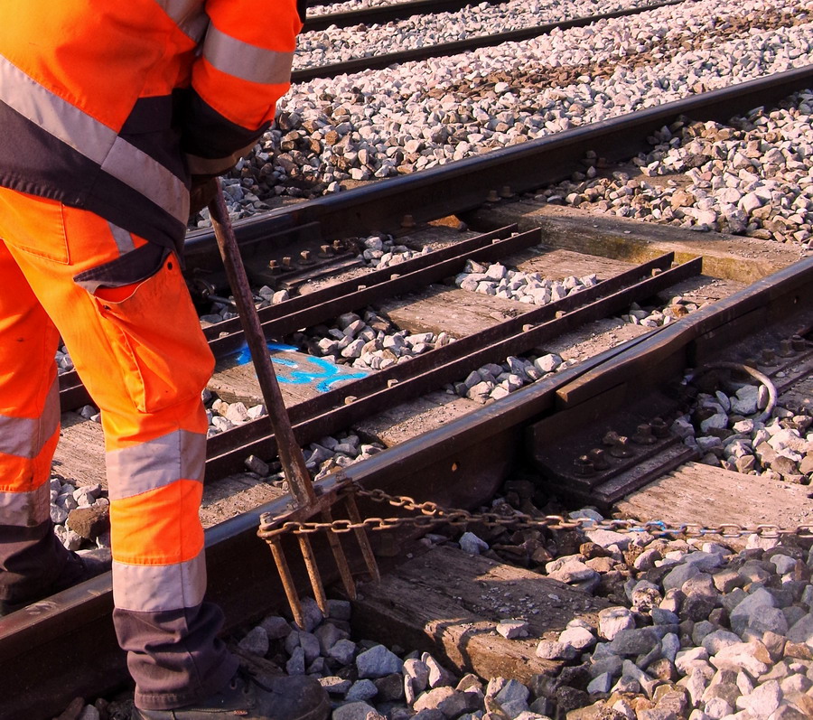 travail avec une fourche à ballast (Travaux de ballastage, dégarnissage, etc…)