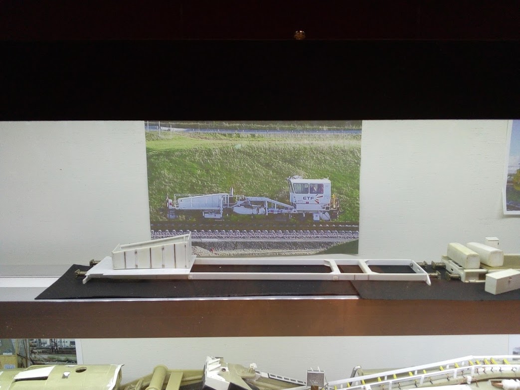 suivi d'un wagon de transport de traverse avec son portique de chez Meccoli de Guillaume