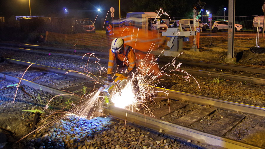 tronçonnage du rail au PN 58 à Chauny le 16-04-2019