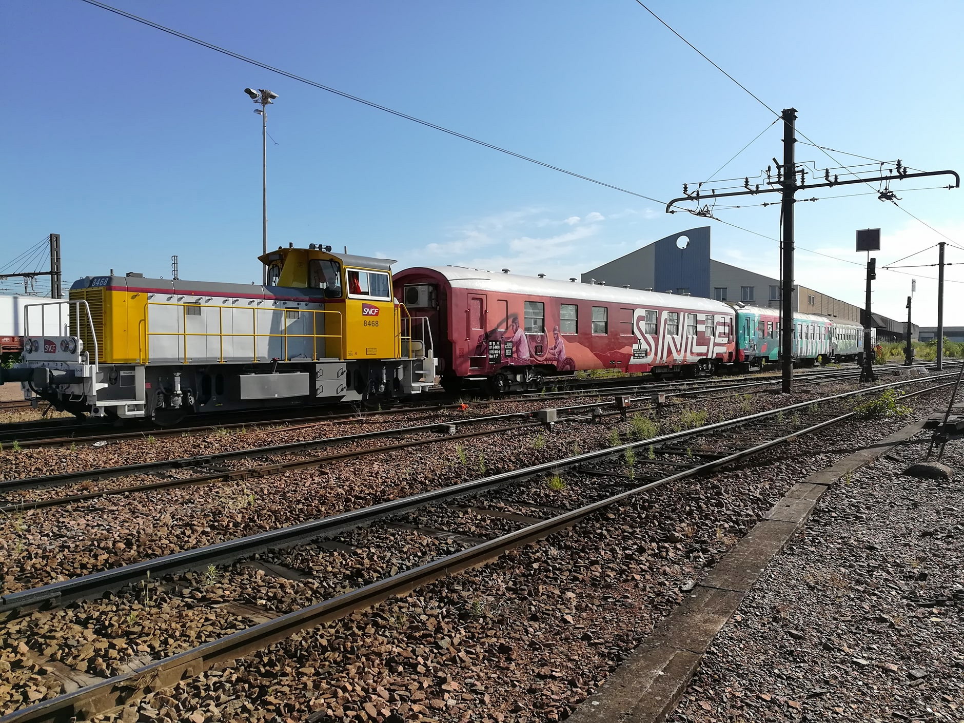 La voici sur la base arrière en gare de Joué-les-Tours (37) pour les travaux de la ligne Tours Loches