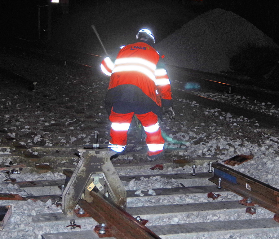 préparation pour la mise en place par la suite des éclisses à 6 trous au PN 58 à Chauny nuit du 23 au 24-04-2019