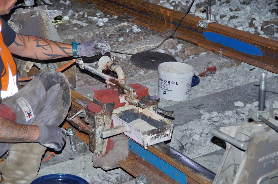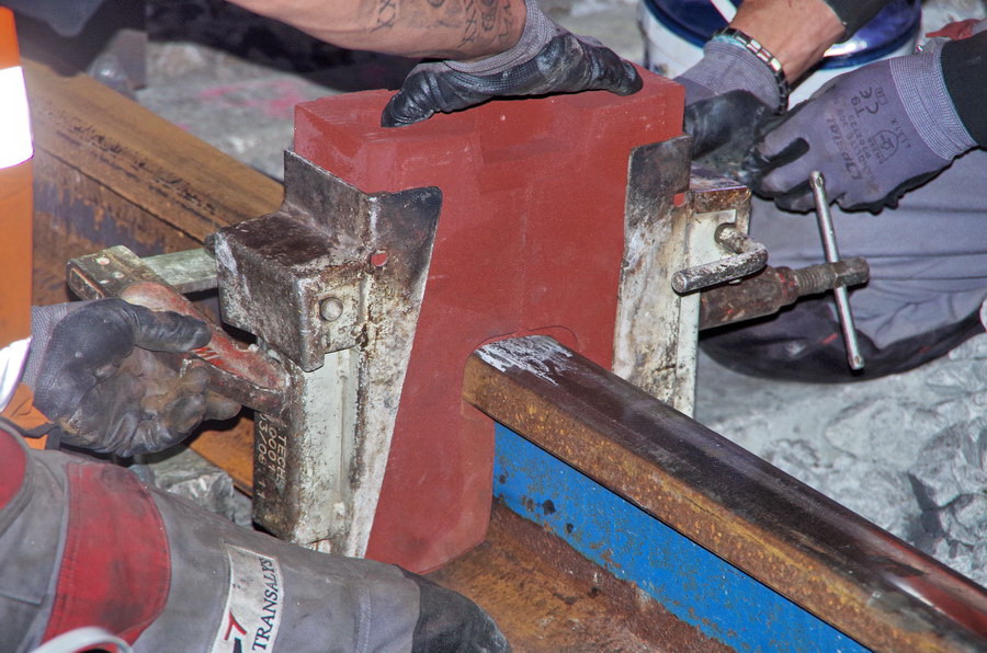 La suite avec la préparation pour une nouvelle Soudure Aluminothermique par la société Transalys