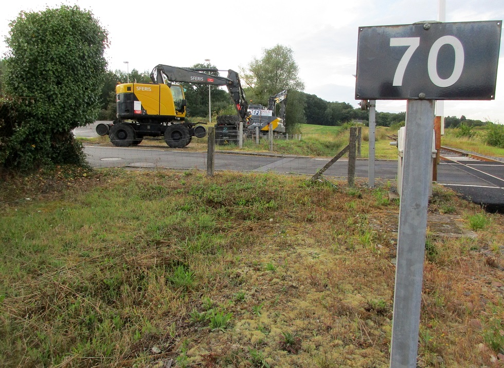 Deux pelles Rail Route stationnent déjà au PK 275,805 (PN 70 sur la commune de Chambourg sur Indre). Sans aucune info, je suis surpris de leurs présences presque 2 mois avant le début des opérations (n'étant pas spécialiste en la matière, peut-être s'agit-il de phases préparatoires de travaux en vue du futur RVB ?). La première machine est une Unac 22 TRR de SFERIS, la seconde une Doosan ACX DX 160 WRR de Défi Rails :