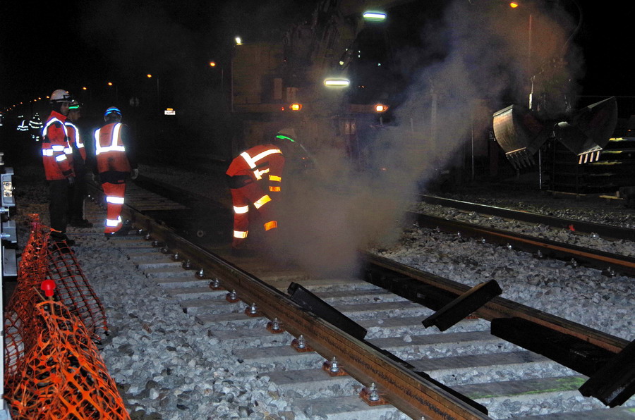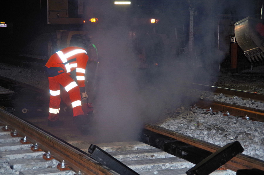- graisse de montage Terco entre les pièces compensatrices et les dalles STRAIL pour le PN 58 à Chauny nuit du 29 au 30-04-2019