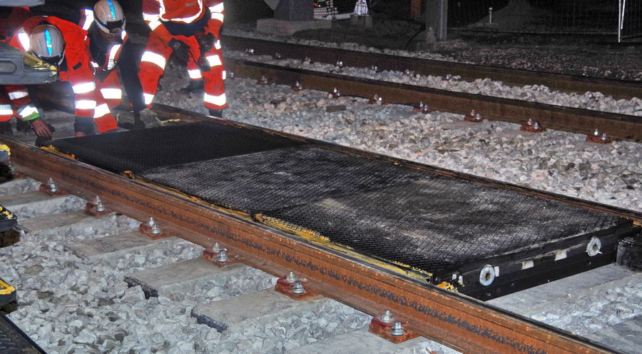 POSE DES ÉLÉMENTS STRAIL, ENTRE FILES DE RAILS