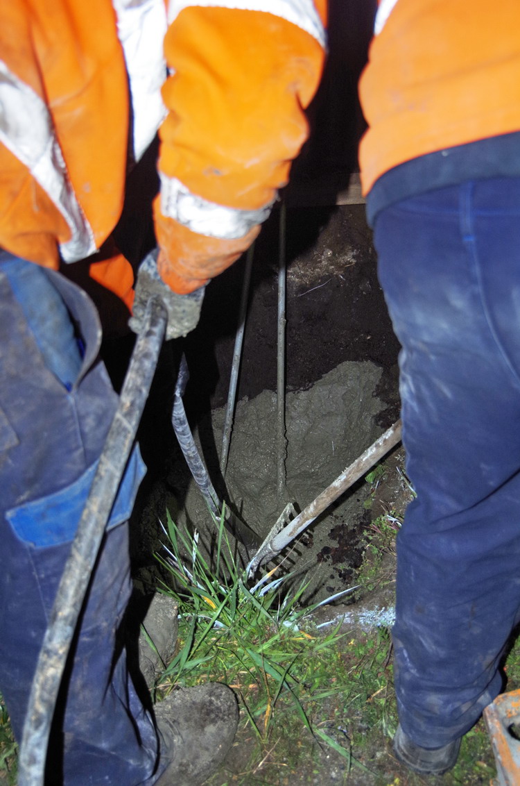 préparation du béton prêt à l'emploi de Cantillana pour les trous de mâtage au PN 58 à Chauny nuit