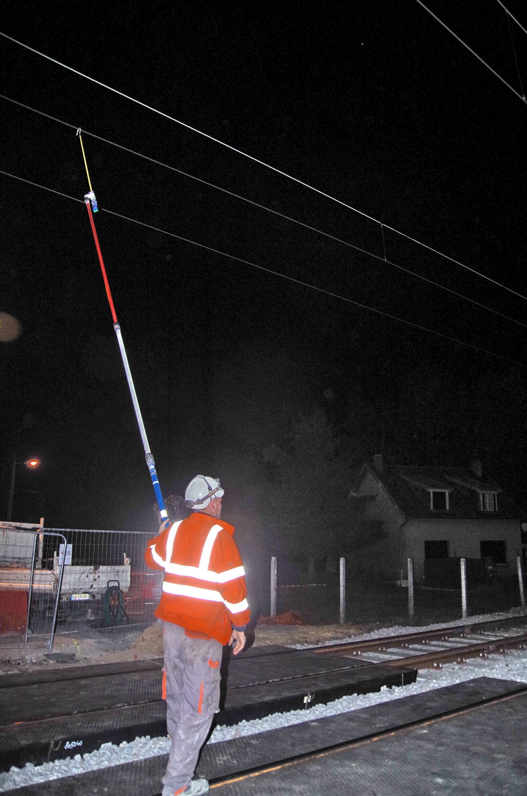mise en place de la perche télescopique isolante caténaire au PN 58 à Chauny nuit du 06 au 07-05-2019