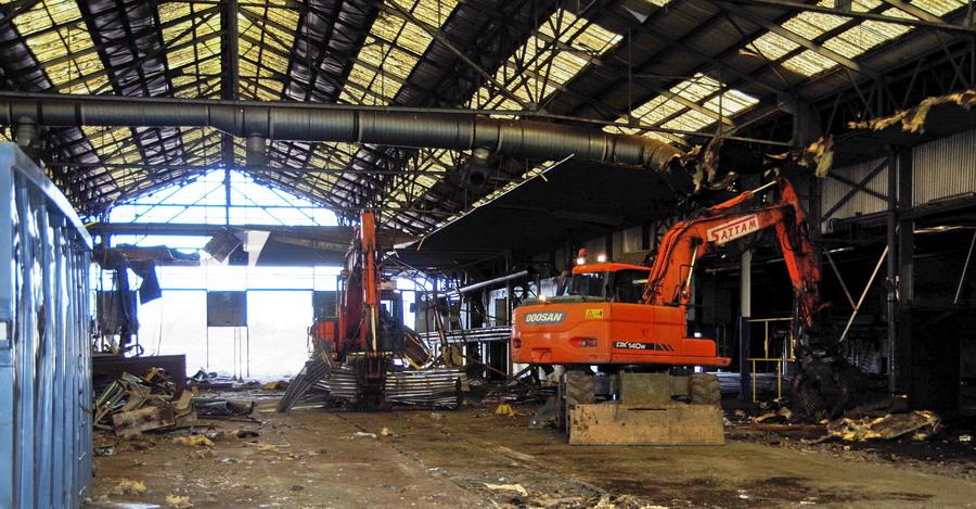 avec la démolition et le désamiantage de l'intérieur des bâtiments sur le site pour leurs transformations