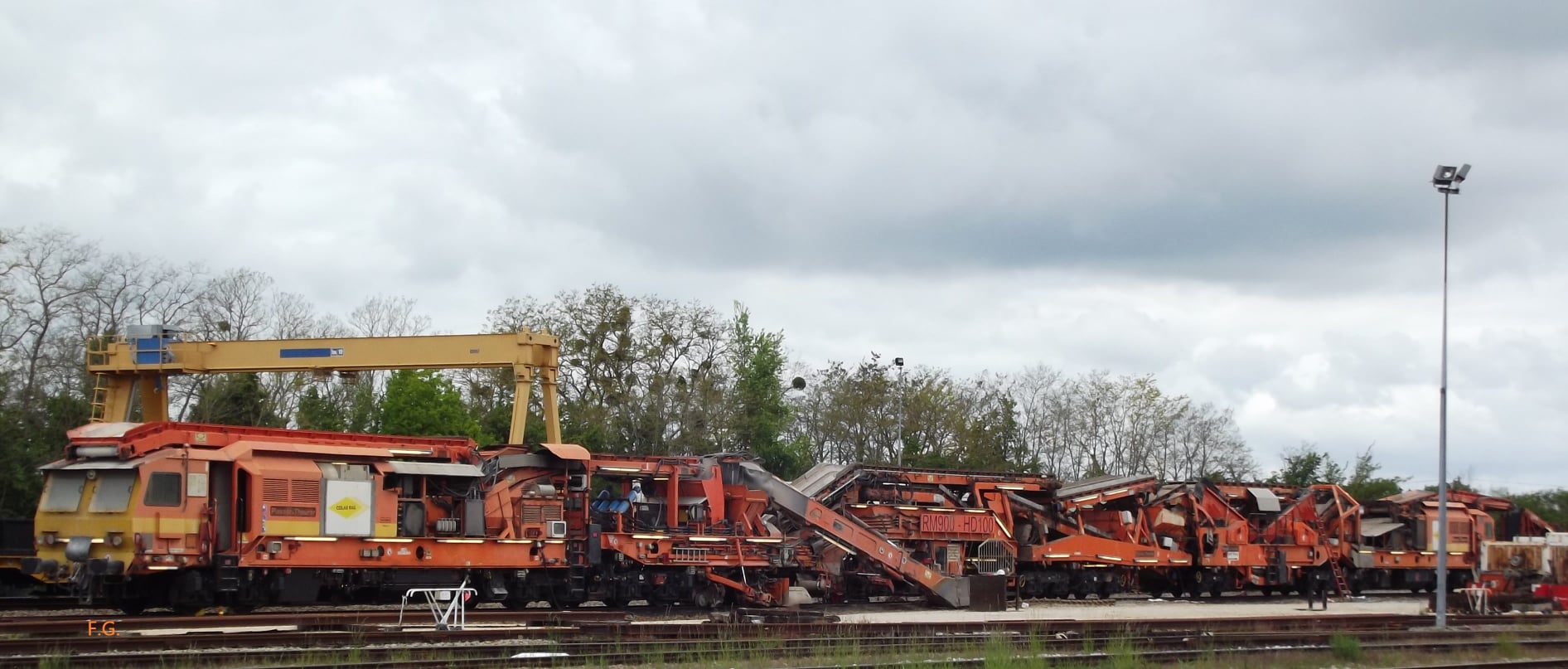 Voici quelques photos de la rame de la Dégarnisseuse Colas Rail RM900-HD100 avant son départ pour l'atelier Ramfer