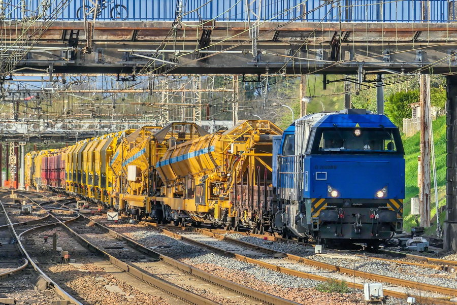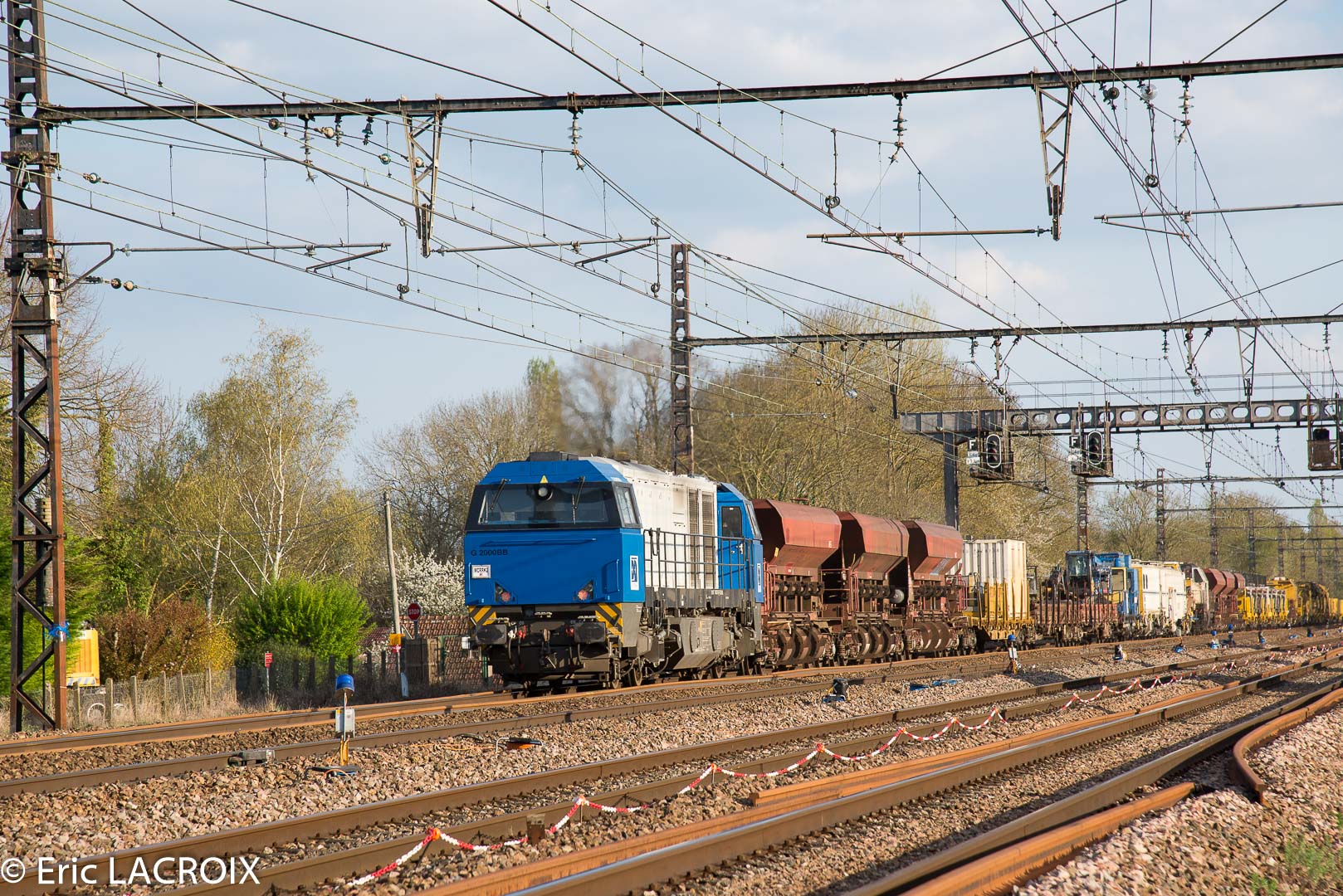 G 2000 - 5001839 - ETMF - 92 87 0002 027-6 F-COLRA en pousse du train de renouvellement P95 MATISA Transalp Renouvellement passe à Villeperrot (89) pour rejoindre la base de travaux de St Florentin. Avril 2017.