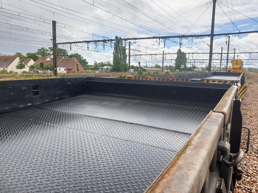 il se trouve sur la rame béton de TSO triage des Aubrais-Orléans pour Nangis (électrification de la ligne Paris Troyes) le 12 juin 2019