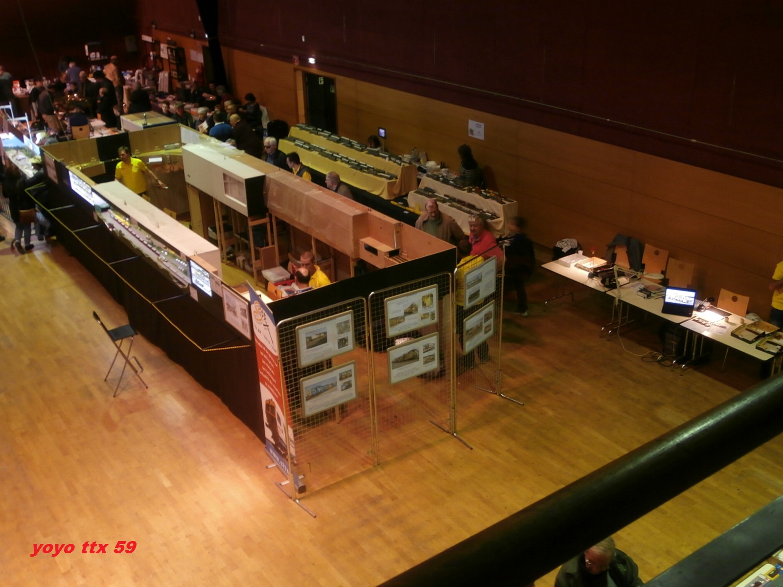 Voici deux petites vues aériennes du stand STTX avec le réseau de Bruno ( :coucou: ) , le stand exposition de matériels INFRA de Christian ( :coucou: ) et a la suite les ateliers et l'espace affichage documentations :