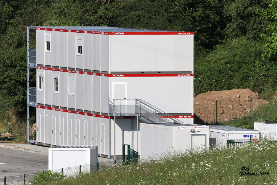 la construction modulaire.pour la base vie Meccoli/ETF sur la base de travaux du Puy-Imbert le 07-07-2019