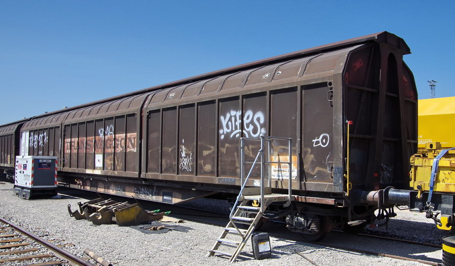 Voici le wagon couvert atelier - 33 80 2847 121-1 Habiis 62 RIV D-TR de Transalp Renouvellement