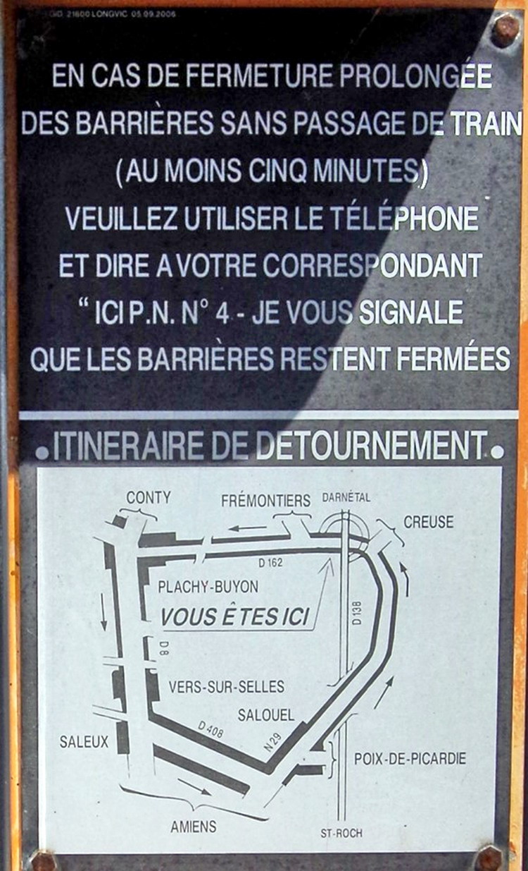 panneau d'information S2R Service Rail route pour le PN n°4 à Bacouel-sur-Selle le 23-07-2019