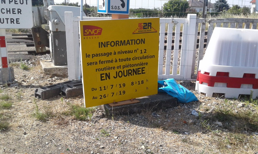 avec le panneau de fermeture du PN du 23-07 à 6h00 au 30-08-2019 à 18h00