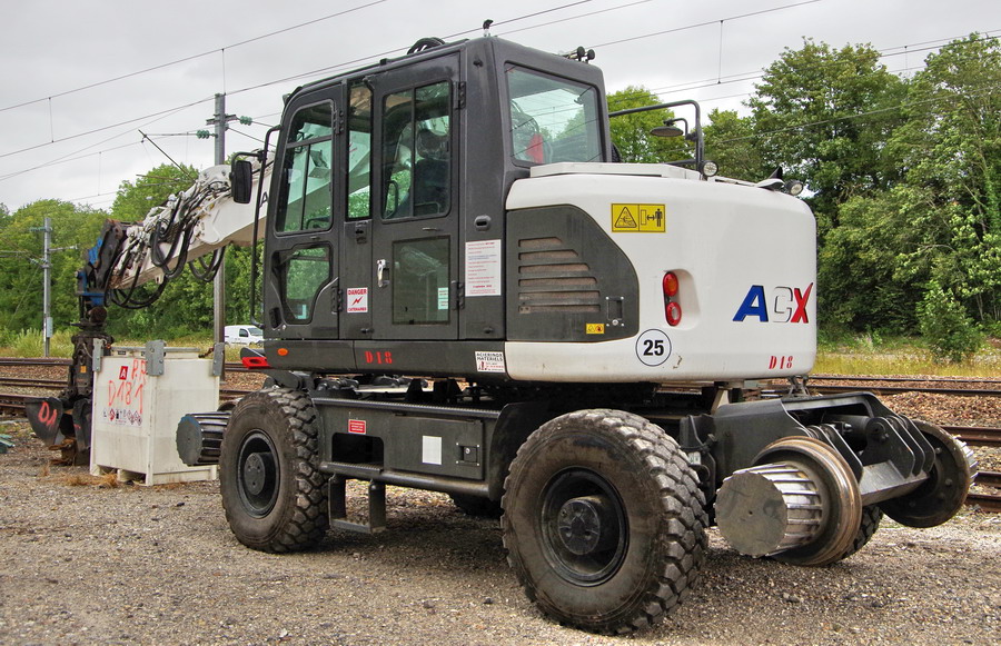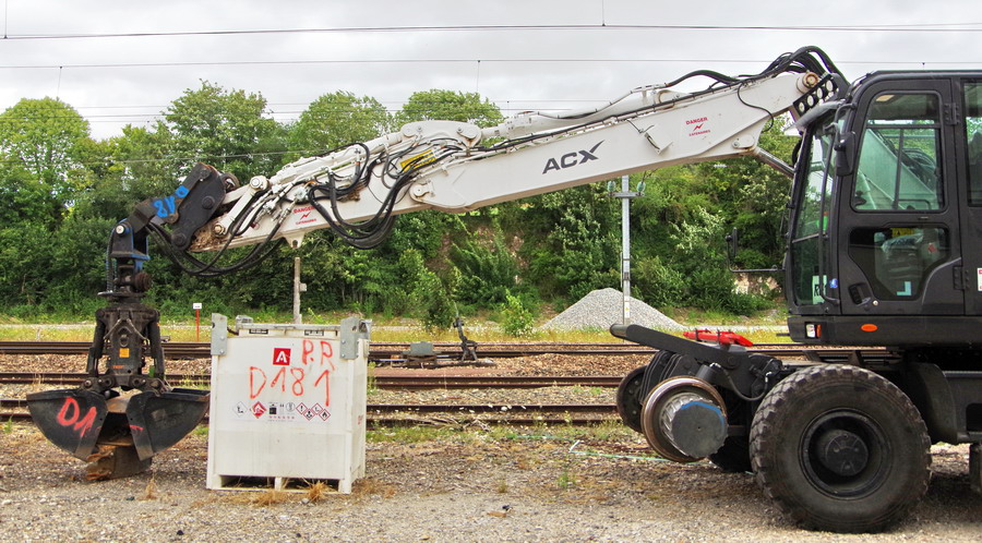Photos de Bruno Delaplace en gare de Poix-de-Picardie avec la Pelle ACX23RR de Delcourt Rail D19