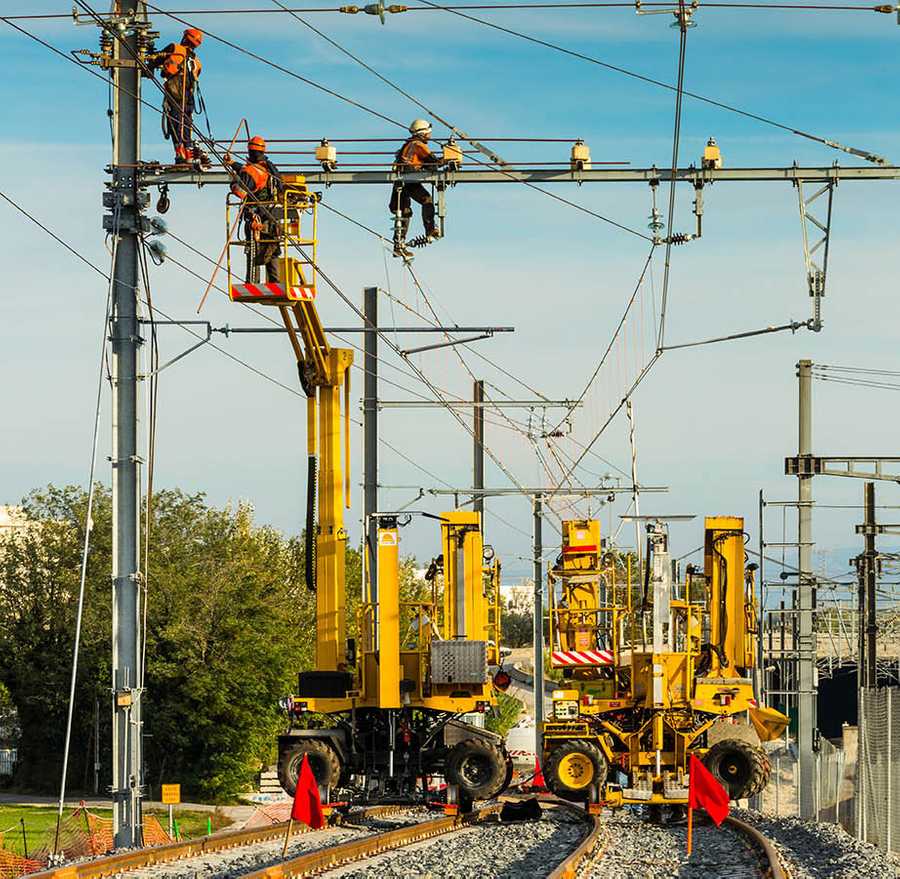 • 3 000 poteaux supportant le fil caténaire à poser.