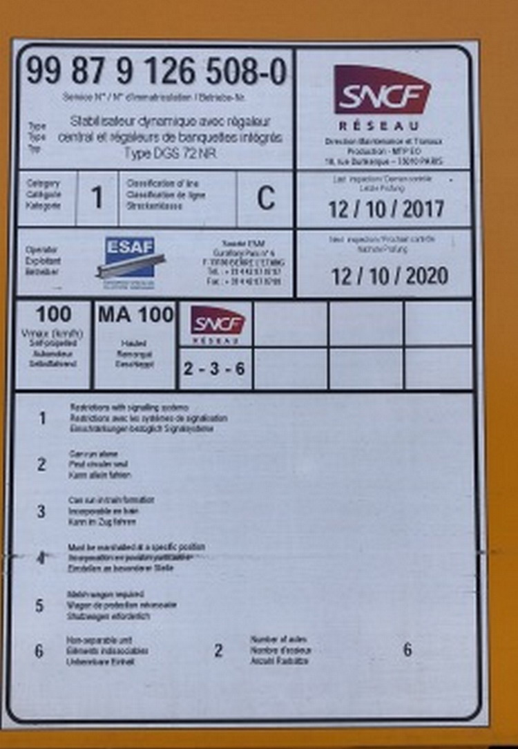 J'ai peut-être écrit une petite bêtise ci-dessus car ESAF fait partie du groupe UNIFER, mais aussi de Transalp Renouvellement ... alors il s'agit peut-être d'un stabilisateur ESAF ?