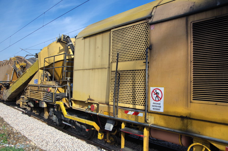 le tapie roulant WAC sur les wagons Falns de Transalp Renouvellement gare de Famechon (80) PK 25 le 27-08-2019