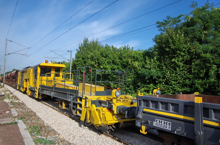 nous sommes maintenant au PK 33 avec le passage de la Dégarnisseuse C75 GCF Roma et la rame de Trémies pour le ballast