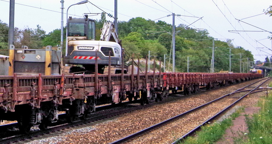 - passage d'une rame de ramassage de fin de chantier en gare de Saleux (80) le 27-08-2019