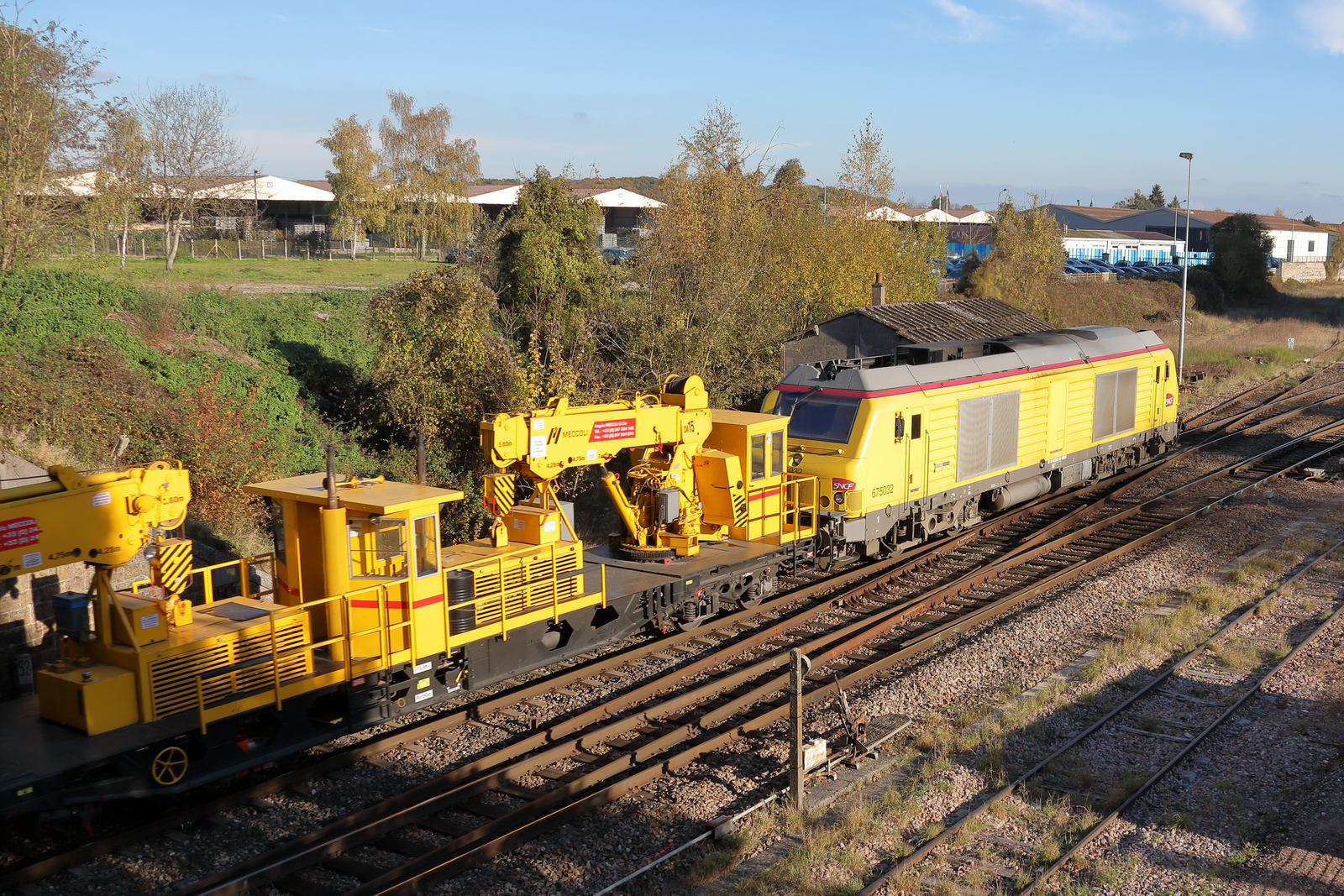 Cette machine etait de passage à Verneuil-L'Etang le 07/11/2017,elle remorquait un bi-grue Meccoli et 5 rames de 8 wagons vides de LRS.