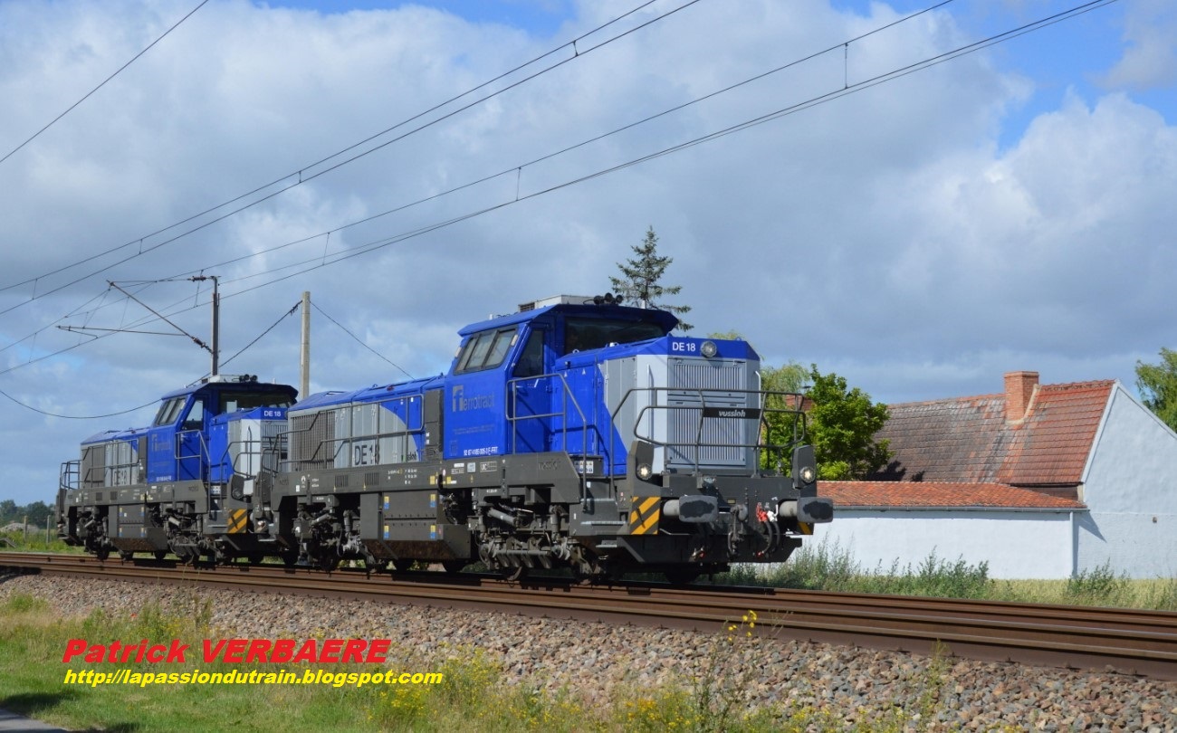 La voici en tête après avoir récupérée la DE 18 / 004-6 en manœuvre pour la récupération du wagon C N° 2 / 99 87 9 310 525-0 pour une mise en tête de la rame WIP Colas Rail :