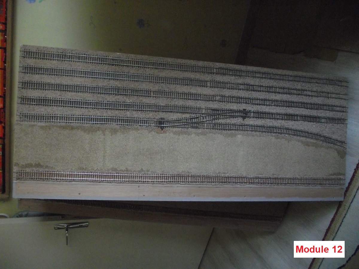 tout d'abord, la pose des voies est faite sur les 10 modules, j'ai commencé la pose des moteurs d'aiguillage,