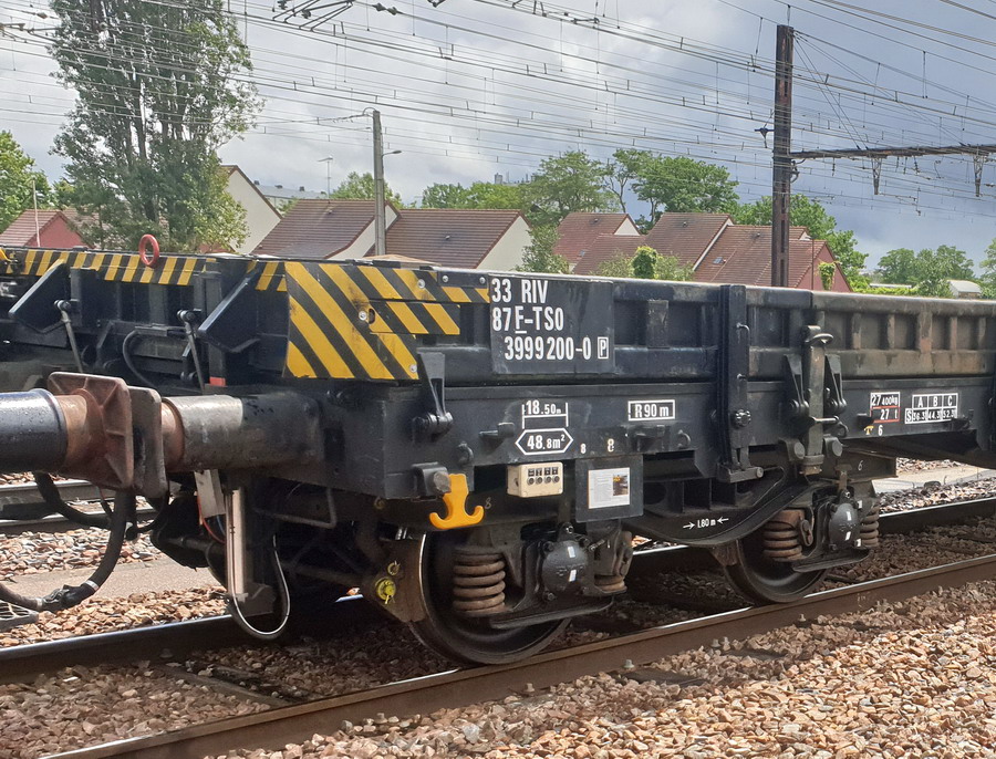 Wagon plat 33 87 3999 200-0 RIV F-TSO de 19,90 m et d'une Tate de 27 T
