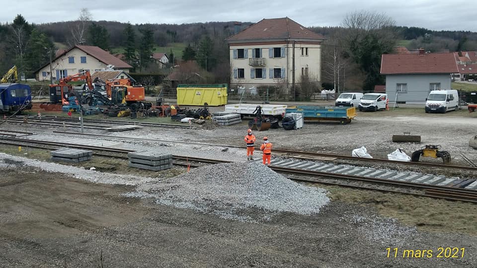 Le 10 mars , un premier train de travaux pour la ligne des Horlogers arrive de Dijon, il passe Franois.