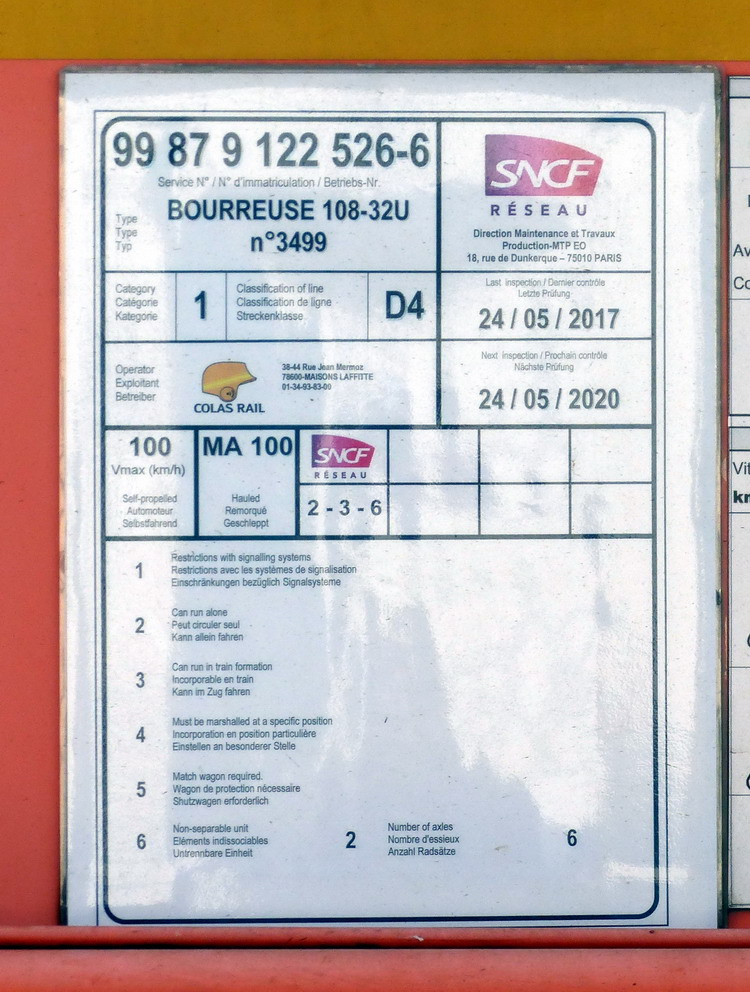 (4) Bourreuse 108 32U n° 3499 Colas Rail Agrément travail.JPG