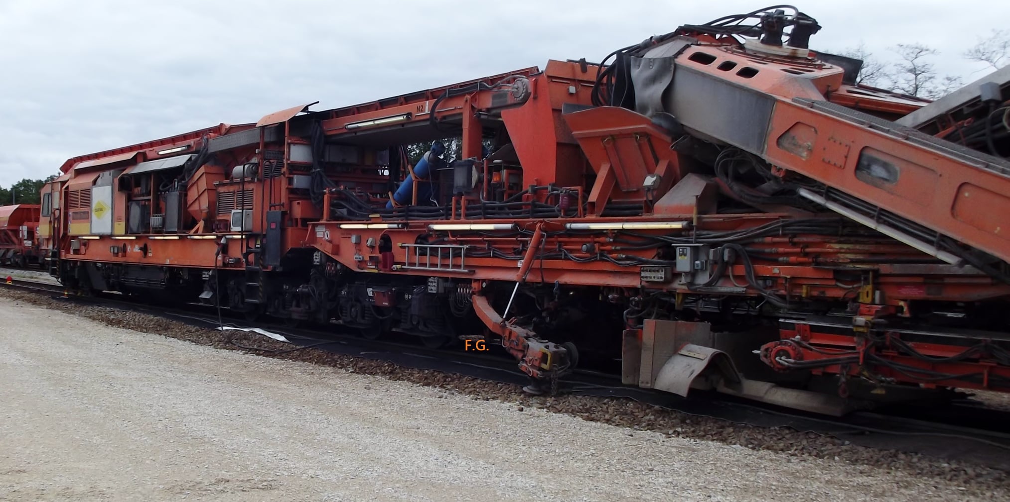 Voici quelques photos de la rame de la Dégarnisseuse Colas Rail RM900-HD100 avant son départ pour l'atelier Ramfer